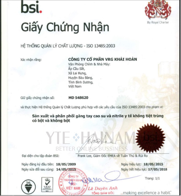 ✅ Chuẩn Chất Lượng ISO 9001: 2008, ISO 13485:2003. ISO 22000:2005.