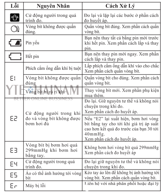| Cử động người trong quá trình đo | Đo lại và lặp lại các bước ở phần đo huyết áp. |