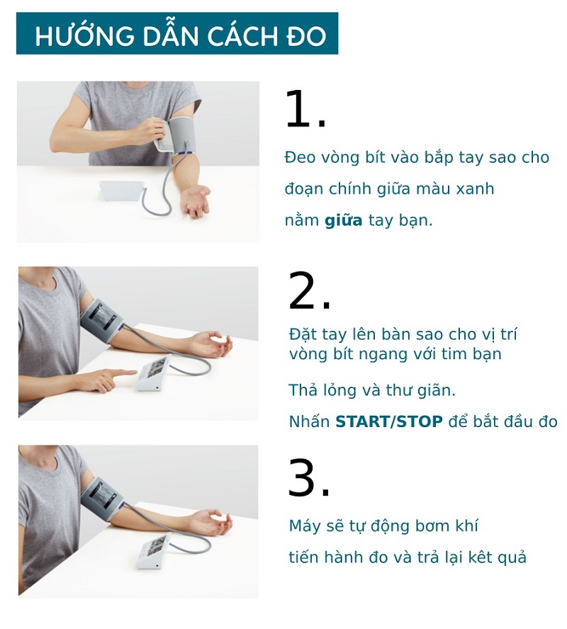 | Áo có thể ảnh hưởng tới vòng bít | Kéo tay áo lên để không bị ảnh hưởng tới vòng bít. Xem phần cách quấn vòng bít |