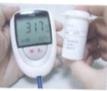 4. Tiếp xúc đầu khe của que thử glucose hoặc acid uric với giọt dung dịch thử cho đến khi máy kêu tiếng “bíp”. Màn hình sẽ thể hiện việc đếm ngược từ 10 giây đối với que thử glucose và 15 giây đối với que thử acid uric (hình 4).