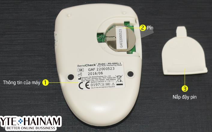 Cấu tạo máy đo đường huyết 3 trong 1 Benecheck Plus mặt sau