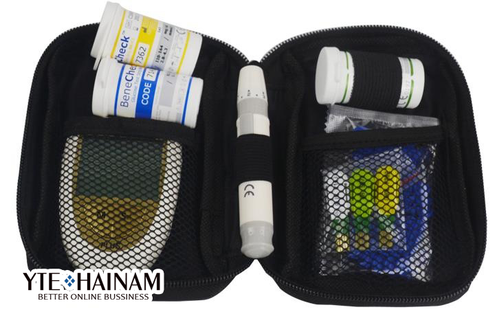 Máy đo đường huyết 3 trong 1 Benecheck Plus có túi đựng giúp cất giữ máy gọn gàng hơn.