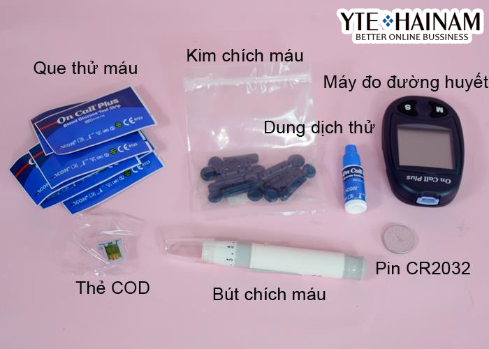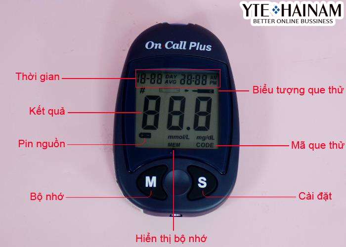 Lưu ý: Máy sử dụng que thử đường huyết On Call Plus.