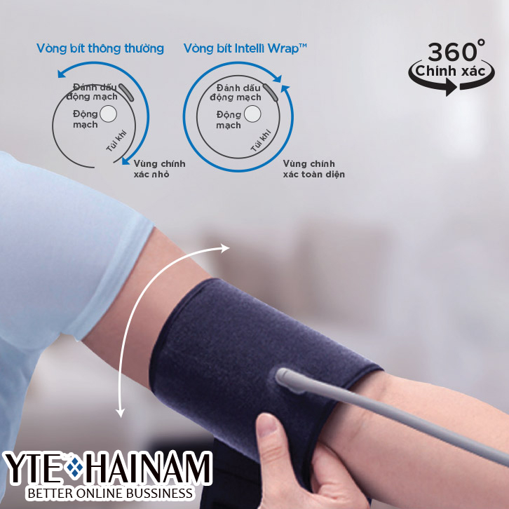 Còn với vòng bít intelliwrap mới của Omron bạn sẽ không cần phải tìm điểm đánh dấu của động mạch nữa . Điều này sẽ làm kết quả đo chính xác hơn .