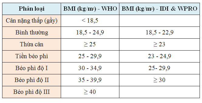 Trong đó, chiều cao tính bằng m và cân nặng tính bằng kg.