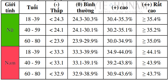 * Tỷ lệ cơ xương là tỷ lệ phần trăm của khối cơ xương trên trong lượng cơ thể người