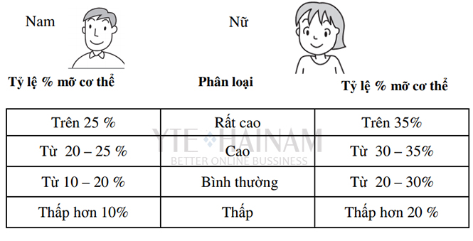 + Tỷ lệ mỡ dưới da của toàn bộ cơ thể: bụng, chân, tay.
