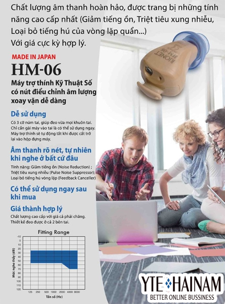 Máy trợ thính kỹ thuật số Rionet HM-06 là chiếc máy trợ thính siêu nhỏ, hỗ trợ âm thanh bên ngoài cho người khiếm thính, nhờ sự trợ giúp của máy nên họ có thể nghe được ngưỡng âm như những người bình thường.