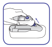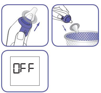 8. Sau khi đo nhiệt độ xong, bạn bấm nút tháo đầu bọc mũi đo nhiệt kế và bỏ đầu bọc vừa dùng. Nhiệt kế tự tắt sau 60 giây không sử dụng