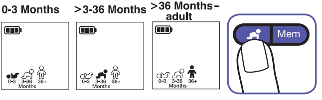 Nhiệt kế sẽ hiển thị như màn hình bên dưới là lúc bạn có thể bắt đầu do nhiệt độ cho bé