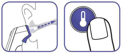 5. Bạn để mũi đầu đo vào thẳng ống tai và bấm nút Start để đo thân nhiệt cho bé