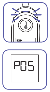 6. Đèn sáng ExacTemp sẽ nhấp nháy trong quá trình lấy nhiệt độ. Khi đèn hết nhấp nháy và đứng yên khoảng 3 giây là lúc nhiệt độ đã được lấy xong. Nếu mũi đo nhiệt độ để không chính xác khiến nhiệt kế không thể lấy được nhiệt độ thì đèn ExacTemp sẽ tắt và dòng chữ POS (position of error) hiển thị trên màn hình.