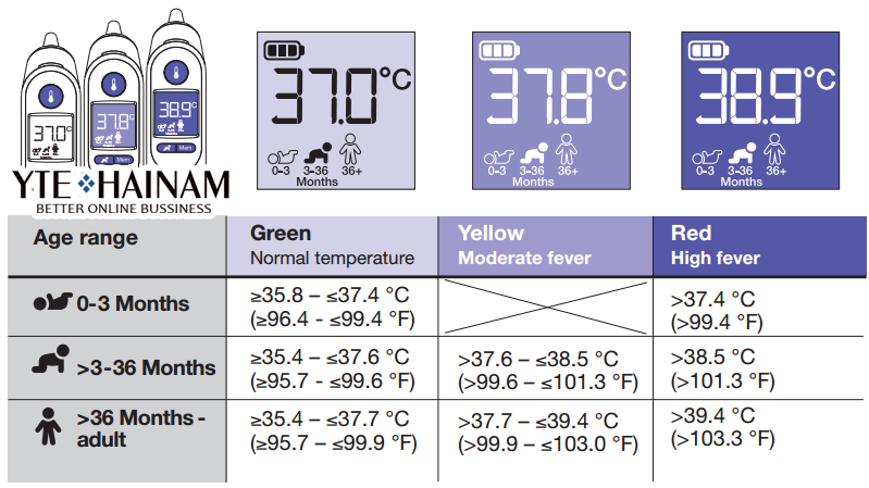 Do các bé có độ tuổi khác nhau sẽ có mức độ sốt nguy hiểm khác nhau, công nghệ này sử dụng bảng màu cho phép bạn nhanh chóng nhận ra tình trạng sốt của bé một cách chính xác.